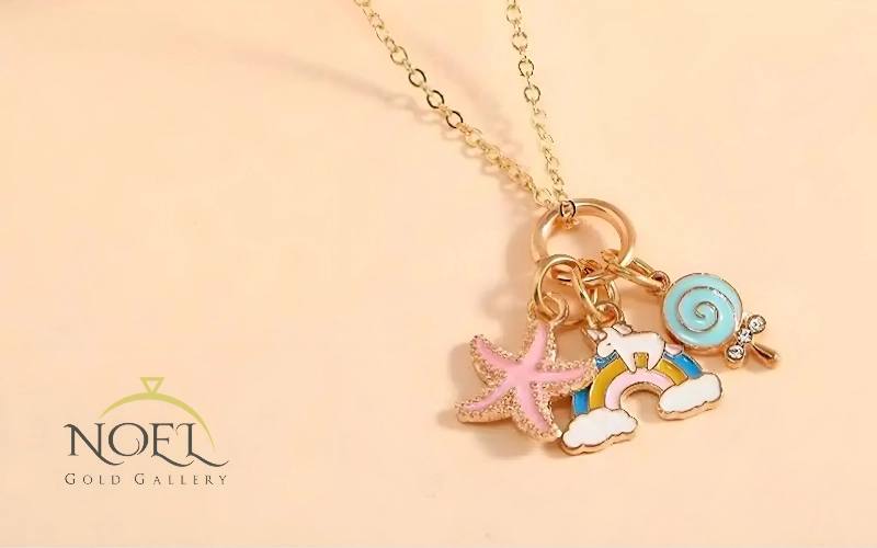 میناکاری با رنگ‌های شاد و کودکانه، گردنبند طلا بچگانه را تبدیل به یک اثر هنری کوچک می‌کند. این گردنبندها معمولاً با رنگ‌هایی مثل آبی، صورتی، زرد و سبز ساخته می‌شوند و حس سرزندگی را به استایل کودک می‌بخشند. گردنبند طلا میناکاری کودک به‌خصوص برای بچه‌های پرانرژی و شاد گزینه‌ای عالی است.