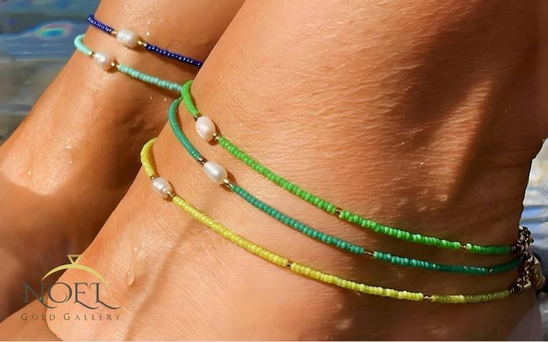 ترکیب طلا با مروارید همیشه جذاب و لوکس بوده است. پابندهای مرواریدی با استفاده از مرواریدهای پرورشی یا طبیعی در کنار زنجیر طلا ساخته میشوند و جلوهای بسیار خاص و زنانه دارند. این مدلها بیشتر برای مجالس و موقعیتهای رسمی استفاده میشوند و میتوانند هدیهای ارزشمند برای عزیزان تان باشند.