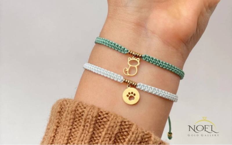 این مدل با ترکیب نخهای رنگی و یک پلاک طلا طراحی میشود که میتواند به شکل اسم، قلب یا نمادهای مینیمال باشد. قفل آن معمولاً کشویی یا گرهای است که قابلیت تنظیم سایز دارد. این مدل برای استفاده روزانه، کادوهای دوستانه یا هدیه به نوجوانان بسیار مناسب است. بازه قیمتی آن معمولاً از ۲ تا ۶ میلیون تومان (بسته به وزن پلاک) متغیر است و برای کسانی که به دنبال هدیهای خاص با بودجه متوسط هستند، انتخابی ایدهآل به شمار میآید.