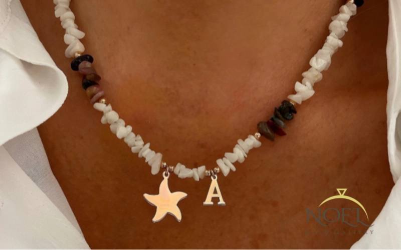 برای کسانی که به دنبال طرحهای خاصتر هستند، گردنبند طلا اسم ترکیبی با نمادها پیشنهاد میشود. در این مدل، کنار اسم یا حرف انتخابی، المانهایی مثل قلب، ستاره، ماه، پروانه یا حتی علائم زودیاک قرار میگیرند. این طراحی هم به زیبایی گردنبند میافزاید و هم بار معنایی بیشتری به آن میبخشد. در گالری نو ال، امکان ترکیب اسم با هر نمادی بر اساس خواسته مشتری وجود دارد.