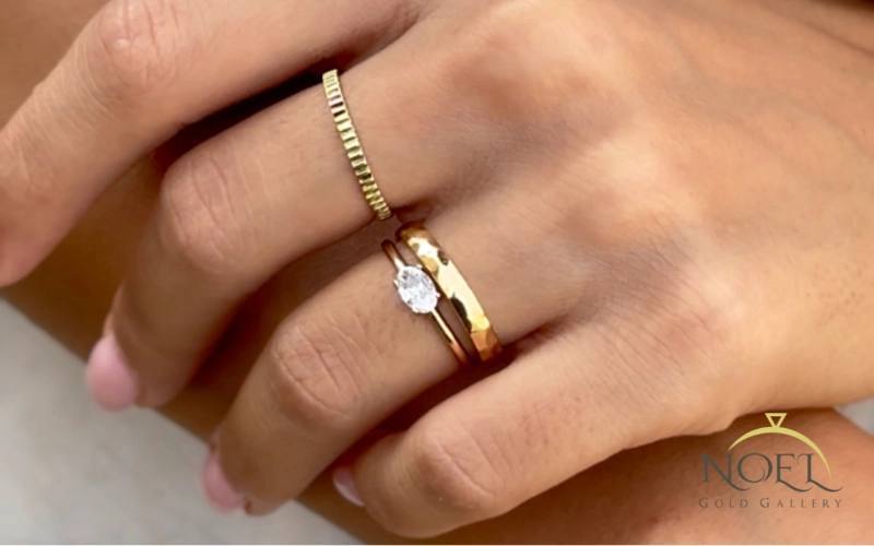 برای کسانی که ظاهر تمیز و مدرن میخواهند اما از برق نگینها هم نمیگذرند، این گزینه ایدهآل است. عرض حلقه، تعداد و اندازهی نگینها را میتوان در کارگاه نو ال دقیقاً مطابق راحتیِ کاربر تنظیم کرد تا خرید انگشتر طلا نگین دار شما به تجربهای شخصیسازیشده تبدیل شود.