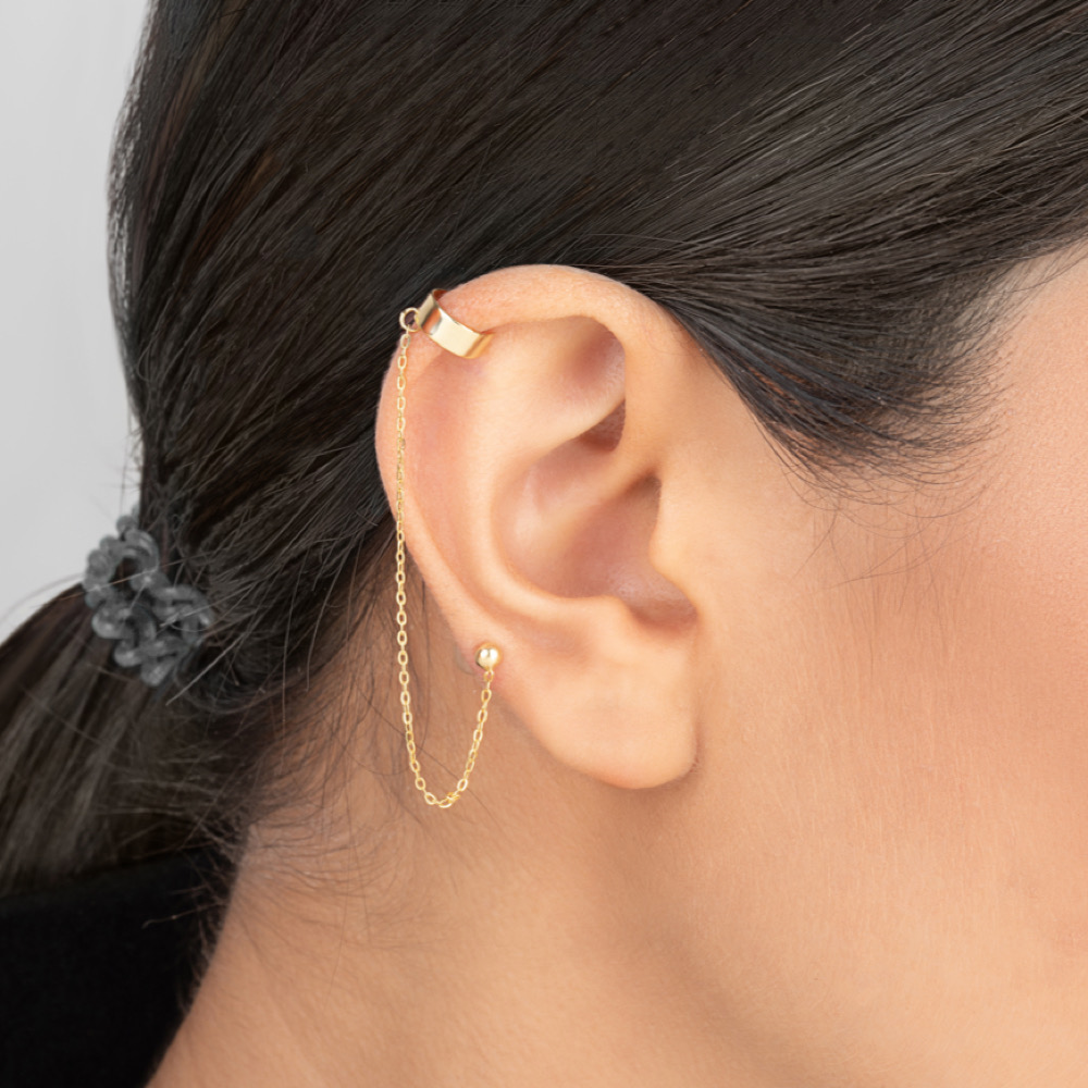 این گوشواره به صورت تک لنگه عرضه می شود و با توجه به انعطاف پذیری طراحی، برای تمام سایز گوش مناسب است. ایرکاف زنجیردار توپر بدون نیاز به پشت گوشواره نصب می شود و هنگام حرکت سر، زنجیر آن به زیبایی جلب توجه می کند. انتخاب ایده آل برای استایل های یقه باز، موهای جمع یا مدل های یک طرفه در میهمانی ها و استفاده روزمره است.