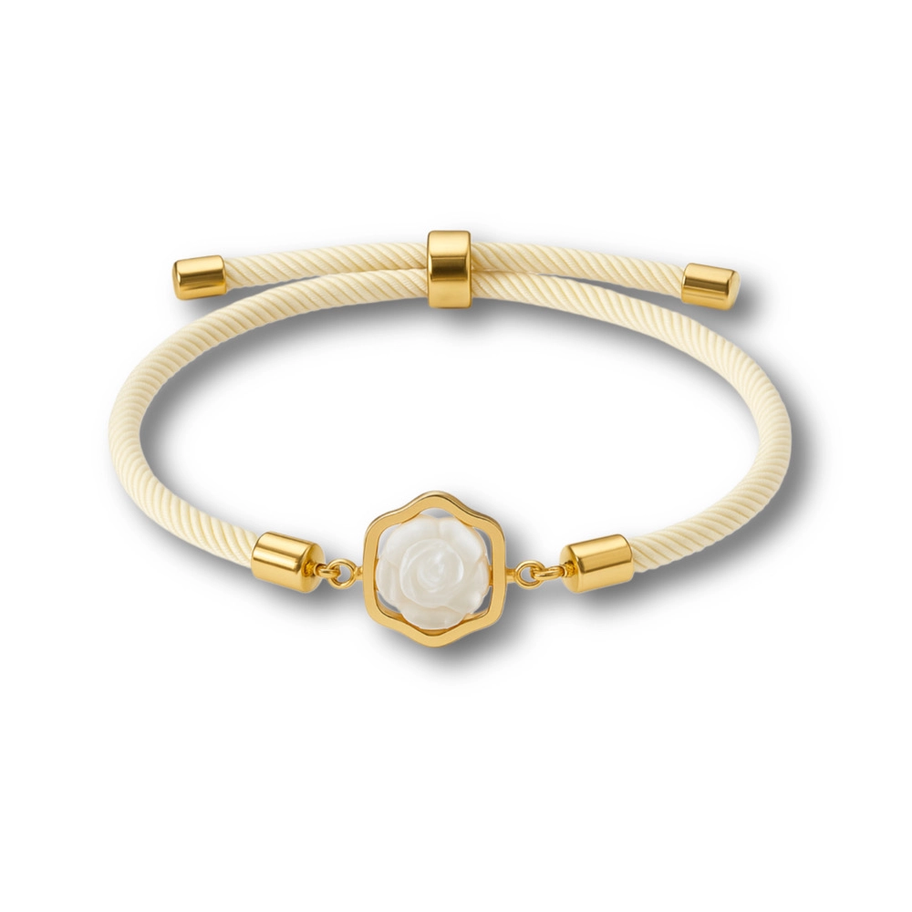 دستبند طلا گل رز صدفی یکی از شیکترین و پرفروشترین مدلهای نو ال گلد گالری است که با طراحی خاص خود، توجه هر سلیقهای را جلب میکند. این دستبند ترکیبی منحصربهفرد از طلای ۱۸ عیار و صدف طبیعی است که در مرکز آن به شکل گل رز تراش خورده و با قاب طلایی اطراف، جلوهای لوکس و چشمنواز پیدا کرده است. گل رز همواره نماد عشق، زیبایی و لطافت بوده و همین ویژگی باعث شده این دستبند جایگاه ویژهای میان طرفداران زیورآلات ظریف و خاص پیدا کند.