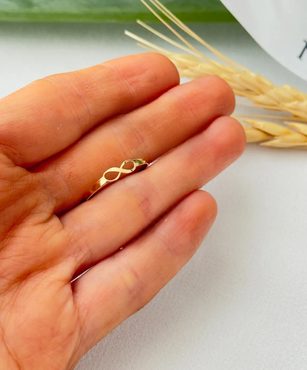 انگشتر بینهایت با طراحی ظریف و مینیمال، نماد بینهایت را به نمایش میگذارد. نماد بینهایت به گونهای طراحی شده است که ظرافت و زیبایی آن را به تصویر میکشد و در عین حال، سادگی و ظرافت را حفظ میکند.