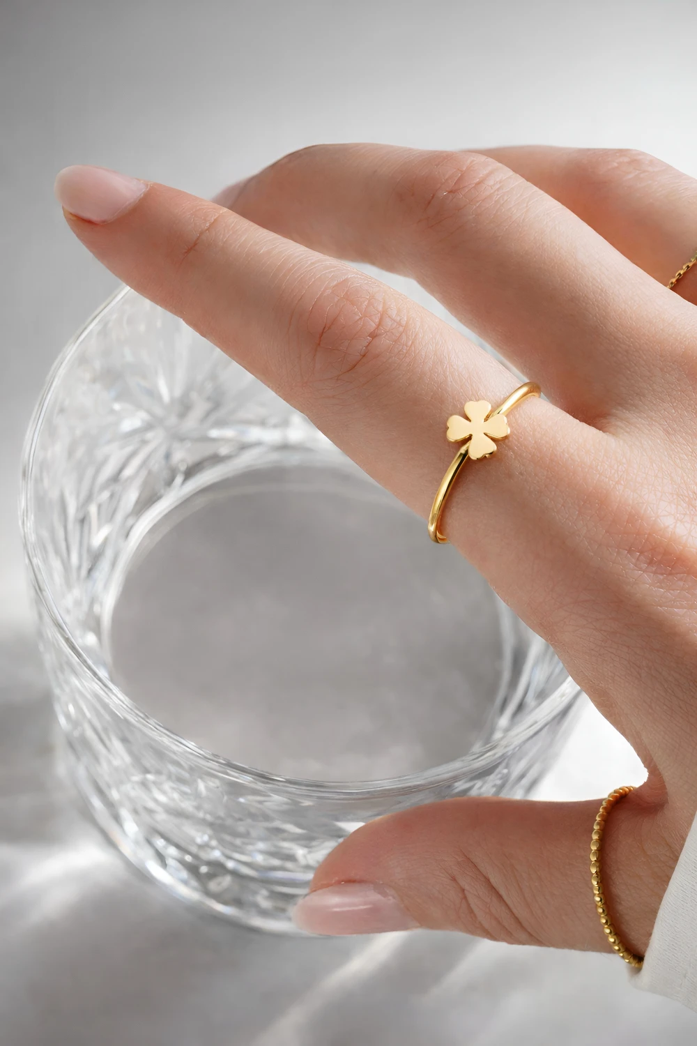 پلاک شبدر به کار رفته در روی این انگشتر نماد خوش شانسی و اقبال خوب است. هر برگ از چهار برگ شبدر چهار پر یک نماد است. برگ اول ایمان، برگ دوم امید، برگ سوم عشق و برگ چهارم خوش شانسی. شبدر چهار پر به دلیل کمیاب بودنش نماد خوش شانسی است.