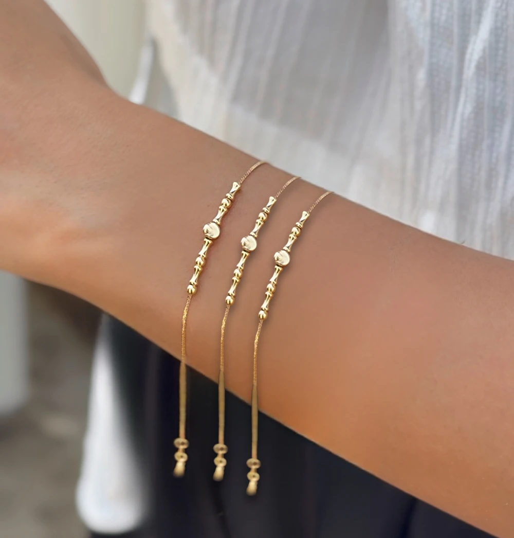 دستبند بامبو کد 100125 یکی از زیباترین و خاصترین مدلهای دستبند زنانه است که طراحی ظریف و منحصر بهفردی دارد. این دستبند با ترکیبی از گویهای طلایی و قطعات استخوانیشکل ساخته شده و جلوهای مدرن و در عین حال کلاسیک به استایل شما میبخشد. به دلیل طراحی مینیمال و در عین حال چشمنواز، این دستبند میتواند بهراحتی با سایر زیورآلات طلا ست شود و انتخابی ایدهآل برای استفاده روزمره یا مراسم خاص باشد.