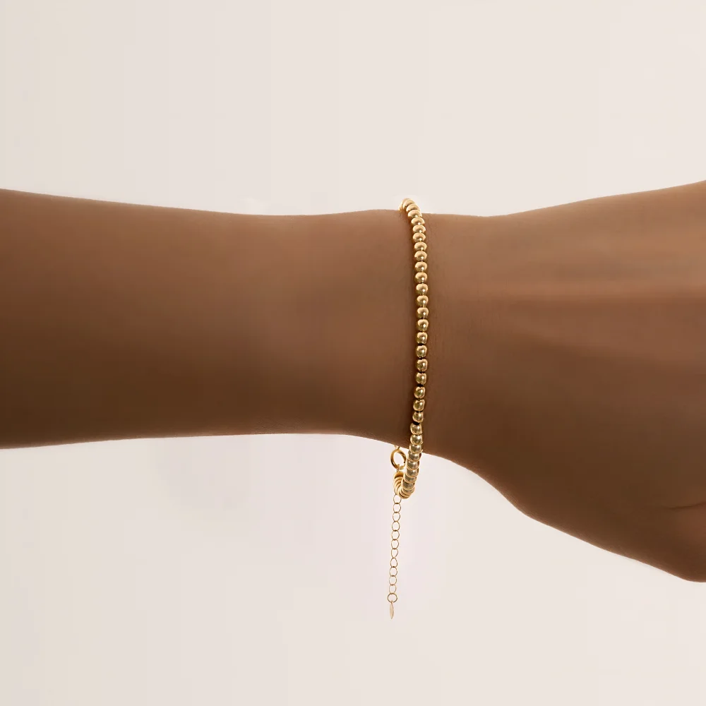 دستبند تمام گوی ، از گویهای طلایی کوچک ساخته شده است. این نوع دستبند به دلیل طراحی ساده و در عین حال شیک خود، همواره مورد توجه بوده و میتواند به عنوان یک زیورآلات دائمی مورد استفاده قرار گیرد.