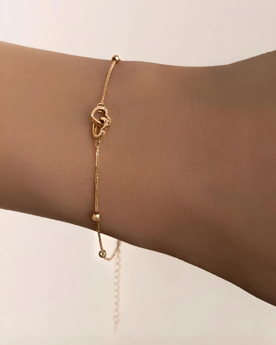 دستبند دو قلب گوی دار کد 100014