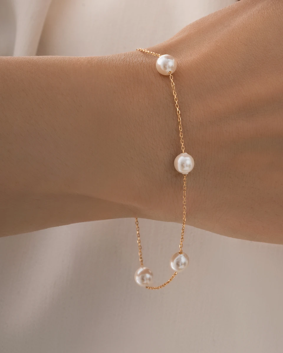 دستبند زنجیر و مروارید طلا کد 100026 از گالری نو ال، یک دستبند طلا زنانه ظریف است که با طراحی مینیمال و در عین حال چشمنواز خود، بیانیهای از سلیقه و اصالت میباشد. این دستبند ظریف که از طلای ۱۸ عیار ساخته شده، رقص مرواریدهای گرد و درخشان را بر روی یک رشته زنجیر فلامینگو (که فوقالعاده مقاوم است) به تصویر میکشد. طراحی نامتقارن و روان مرواریدها بر روی زنجیر نازک طلایی، به آن حالتی مدرن و در عین حال کلاسیک و بیزمان بخشیده و جلوهای اشرافی به مچ دست میبخشد.