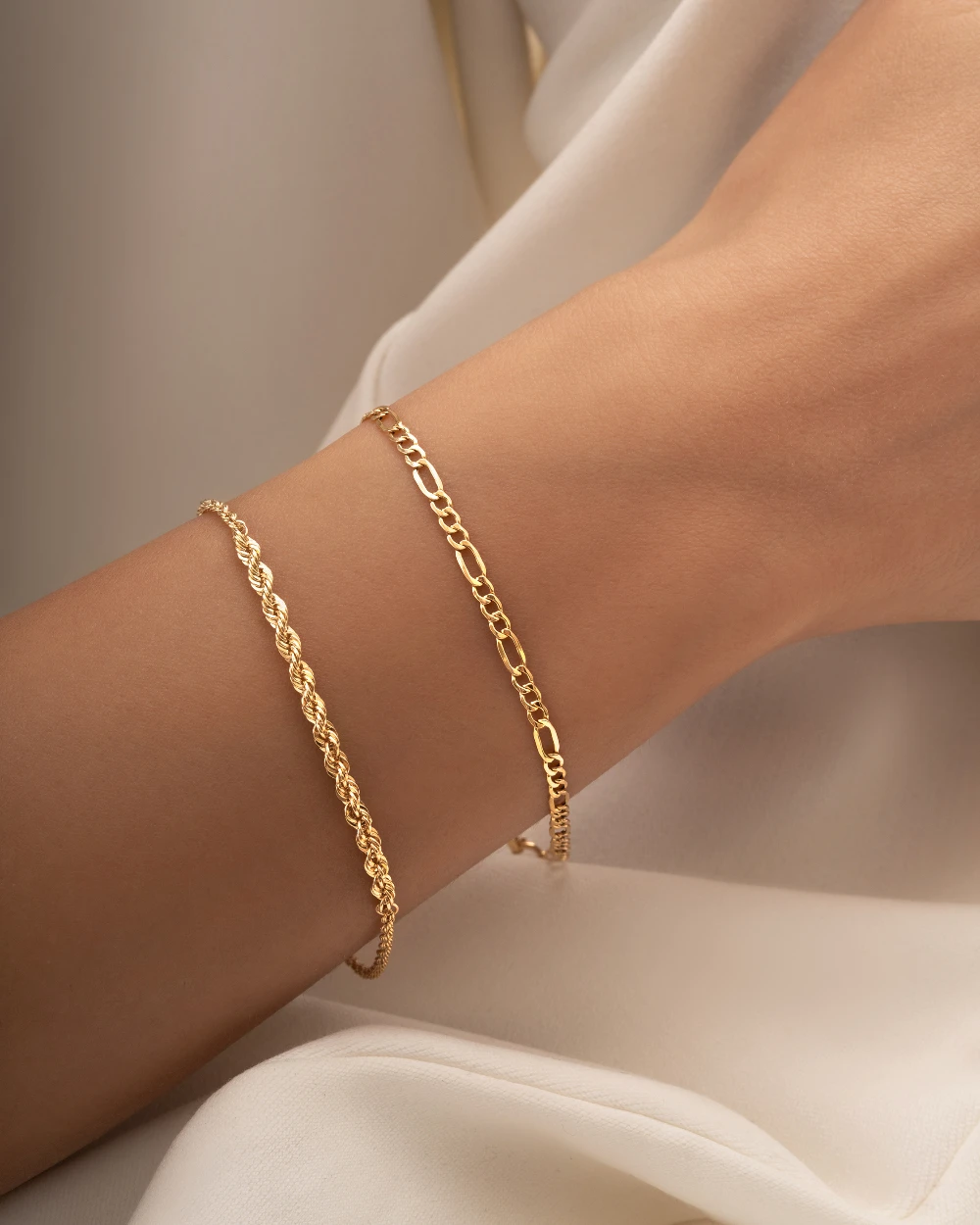 چنانچه مایل به ست کردن دستبند ها به صورت لایه ای با این دستبند میباشید، دستبند زنجیر فیگارو کد 100114 که در تصویر مشاهده میفرمایید نیز گزینه مناسبی است.
