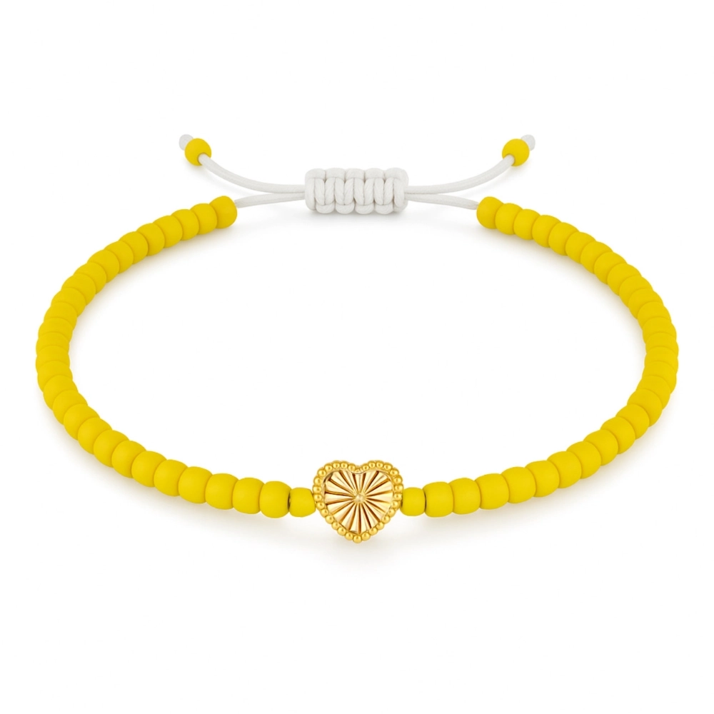 در مرکز هر دستبند یک قلب طلای ۱۸ عیار تراشدار قرار گرفته است.