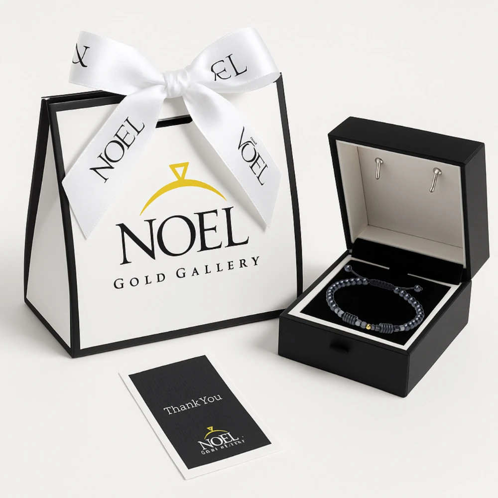 مهرههای این دستبند از سنگ طبیعی حدید ساخته شدهاند که با رنگ خاکستری-متالیک خود، جلوهای مدرن و مردانه ایجاد میکنند. در میان این نظم و سادگی، تکگوی طلایی از طلای ۱۸ عیار همچون خورشیدی درخشان میدرخشد و الهامگرفته از نماد «هلیوس»؛ خدای خورشید در اسطورههای یونانی است.این دستبند بهصورت کشویی قابل تنظیم طراحی شده و برای هر اندازه مچ دست بهراحتی قابل استفاده است. ترکیب سنگ حدید با گوی طلایی در مرکز، طراحی مینیمال اما پرقدرتی را پدید آورده که بهسادگی با هر استایلی ست میشود ،چه اسپرت و روزمره، چه رسمی و شیک.