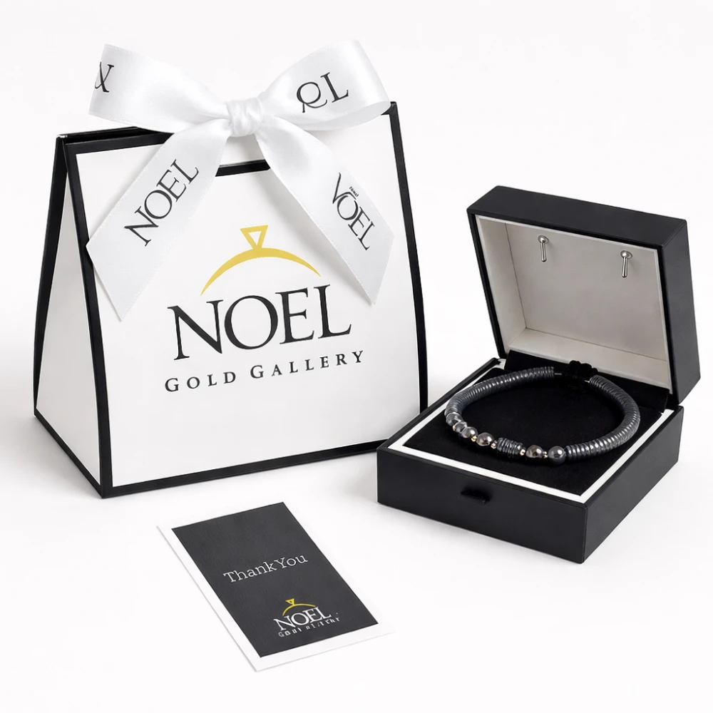 سنگ حدید دودی بهعنوان نماد قدرت و انرژی، در کنار طلای ۱۸ عیار، جلوهای لوکس و در عین حال مدرن ایجاد کرده است. قفل کشویی قابل تنظیم این دستبند باعث میشود بهراحتی با هر سایز مچ دست سازگار شود؛ بنابراین بدون هیچ نگرانی از اندازه، میتوان آن را بهعنوان هدیه انتخاب کرد.