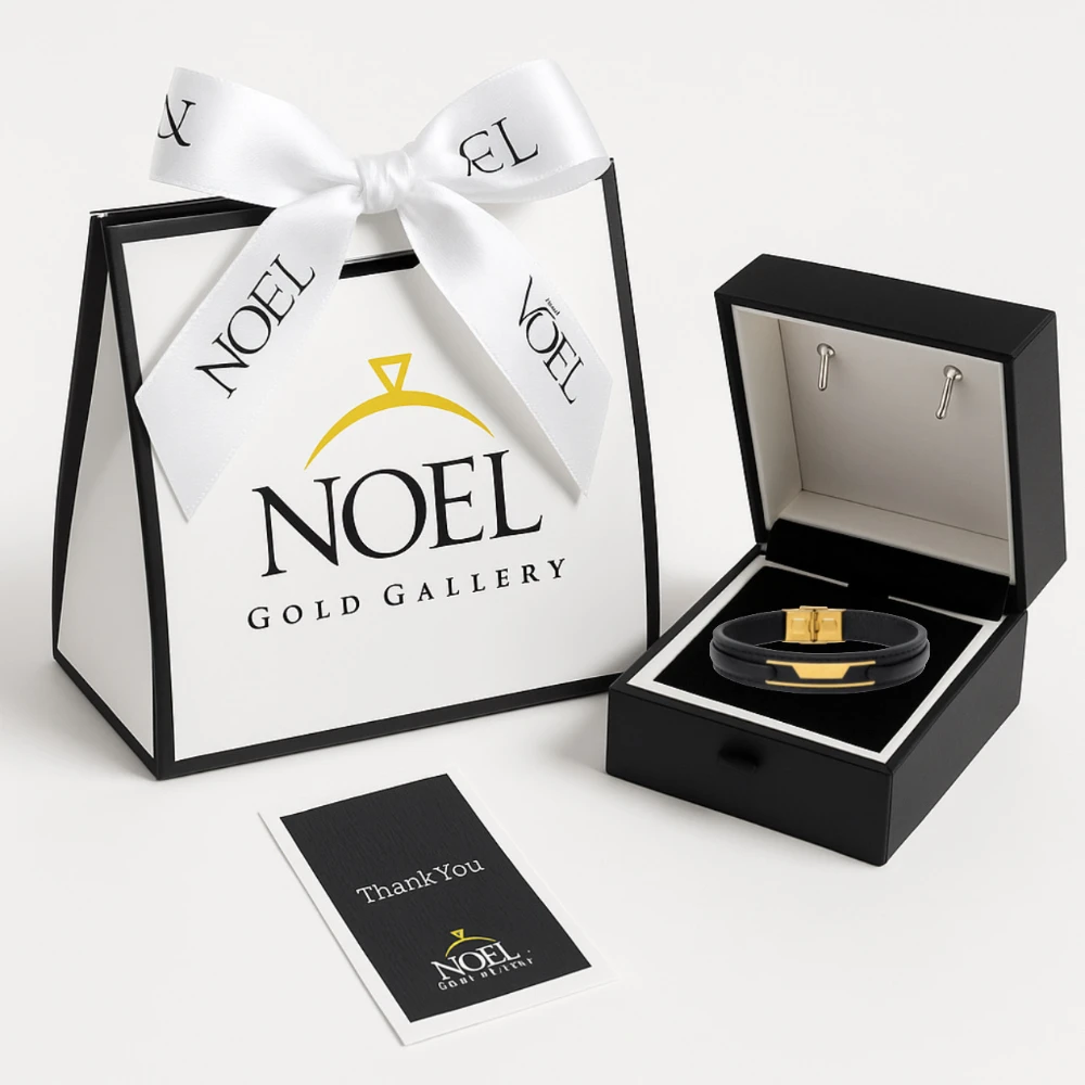 تمامی محصولات در نو ال گلد گالری با بستهبندی شیک و کارت اختصاصی ارسال میشوند تا حس خاص هدیه دادن را کامل کنند. ترکیب چرم اصیل با طلای درخشان، این دستبند را به نشانهای از اعتمادبهنفس و سبک مدرن مردانه تبدیل کرده است.