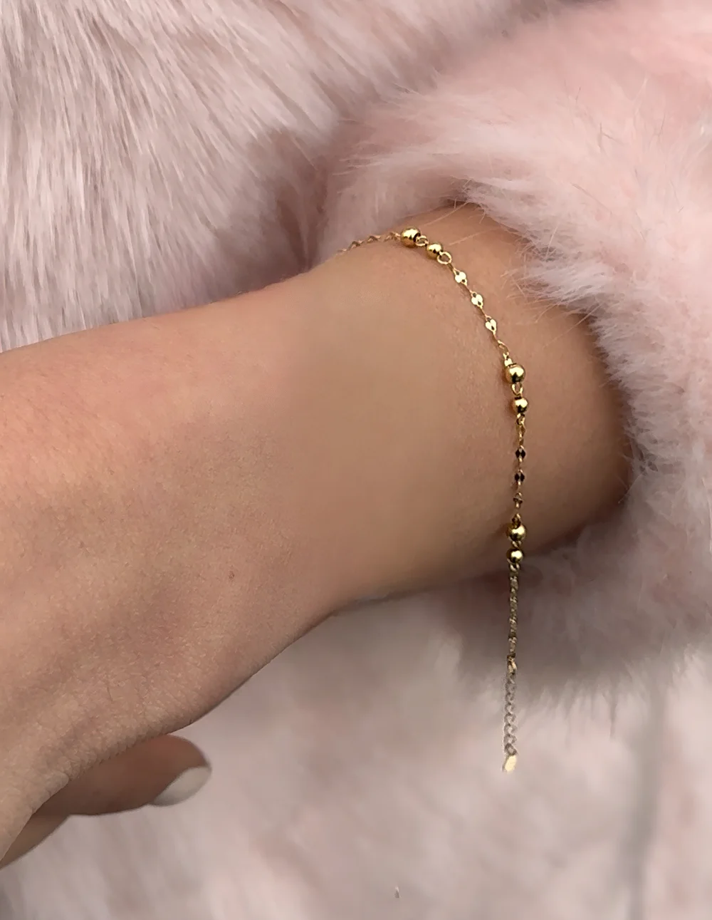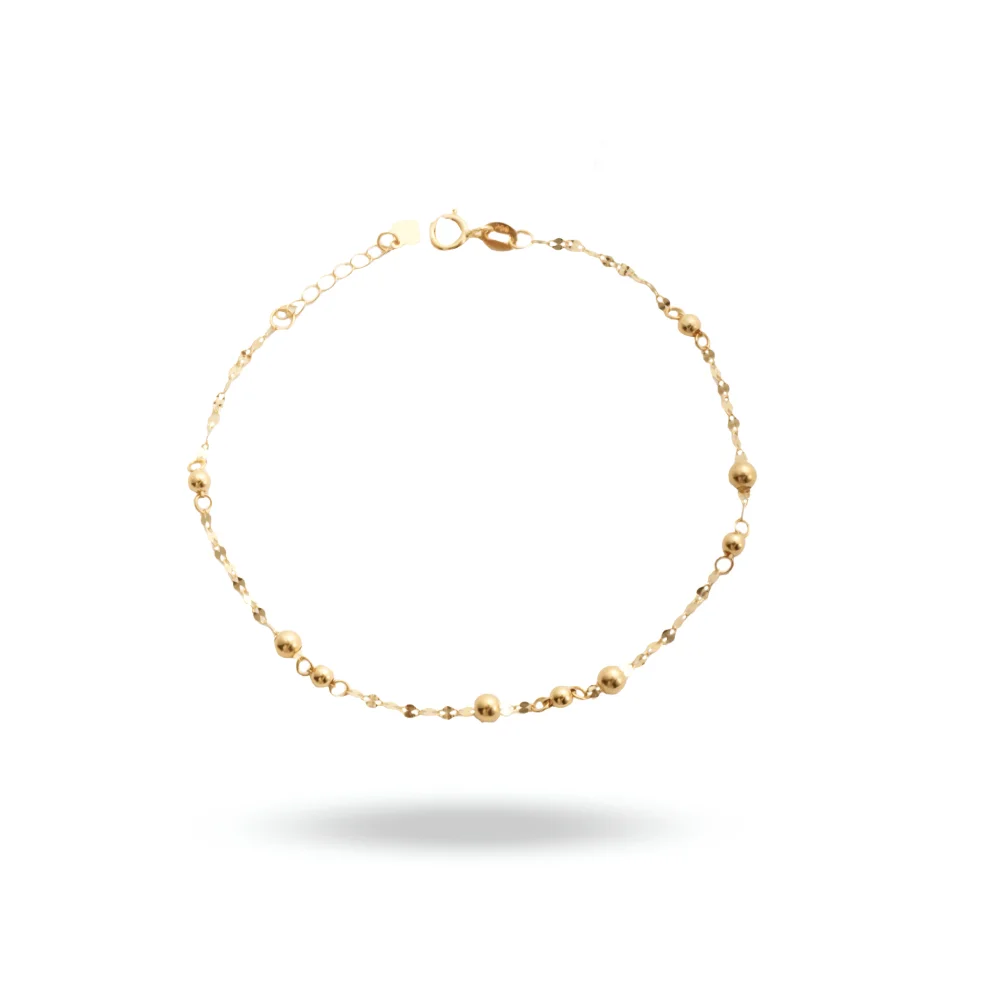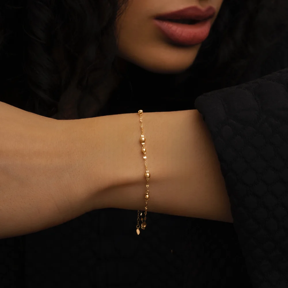 دستبند گویدار ریز، با طراحی ظریف و مینیمال، انتخابی ایدهآل برای خانمهایی است که به دنبال زیورآلاتی ساده اما درخشان هستند. گویهای طلایی کوچک و براق، در کنار زنجیر ظریف، جلوهای بینظیر به این دستبند بخشیدهاند.