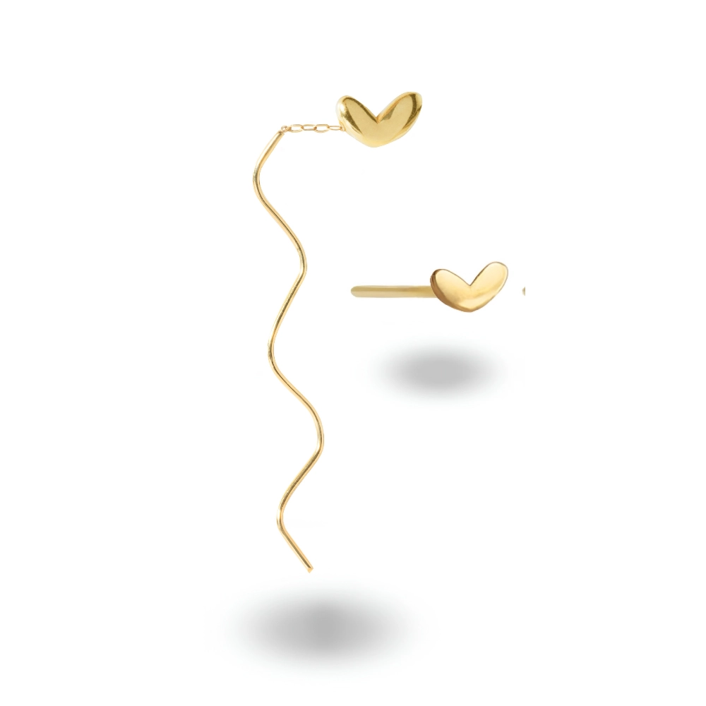 این گوشوارهی خاص و متفاوت از کالکشن نو ال گلد گالری، ترکیبی از ظرافت و طراحی مدرن است. ست شامل دو لنگه گوشواره میشود یک لنگه بخیهای با طراحی قلب بادکنکی و زنجیر ظریف یک سانتی که به بخش مارپیچ متصل میشود. طول قسمت مارپیچ بخیهای ۵ سانت است و با حرکت سر و تغییر حالت بدن، انعطاف و تاب زیبایی به خود میگیرد. اندازه قلب در این مدل ۷ میلیمتر است.