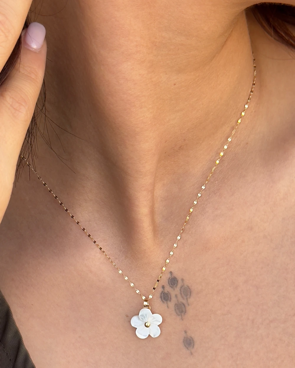 نیمست شکوفه صدفی، ترکیبی از لطافت و درخشش طبیعی صدف با جلوهی طلای ۱۸ عیار است.
