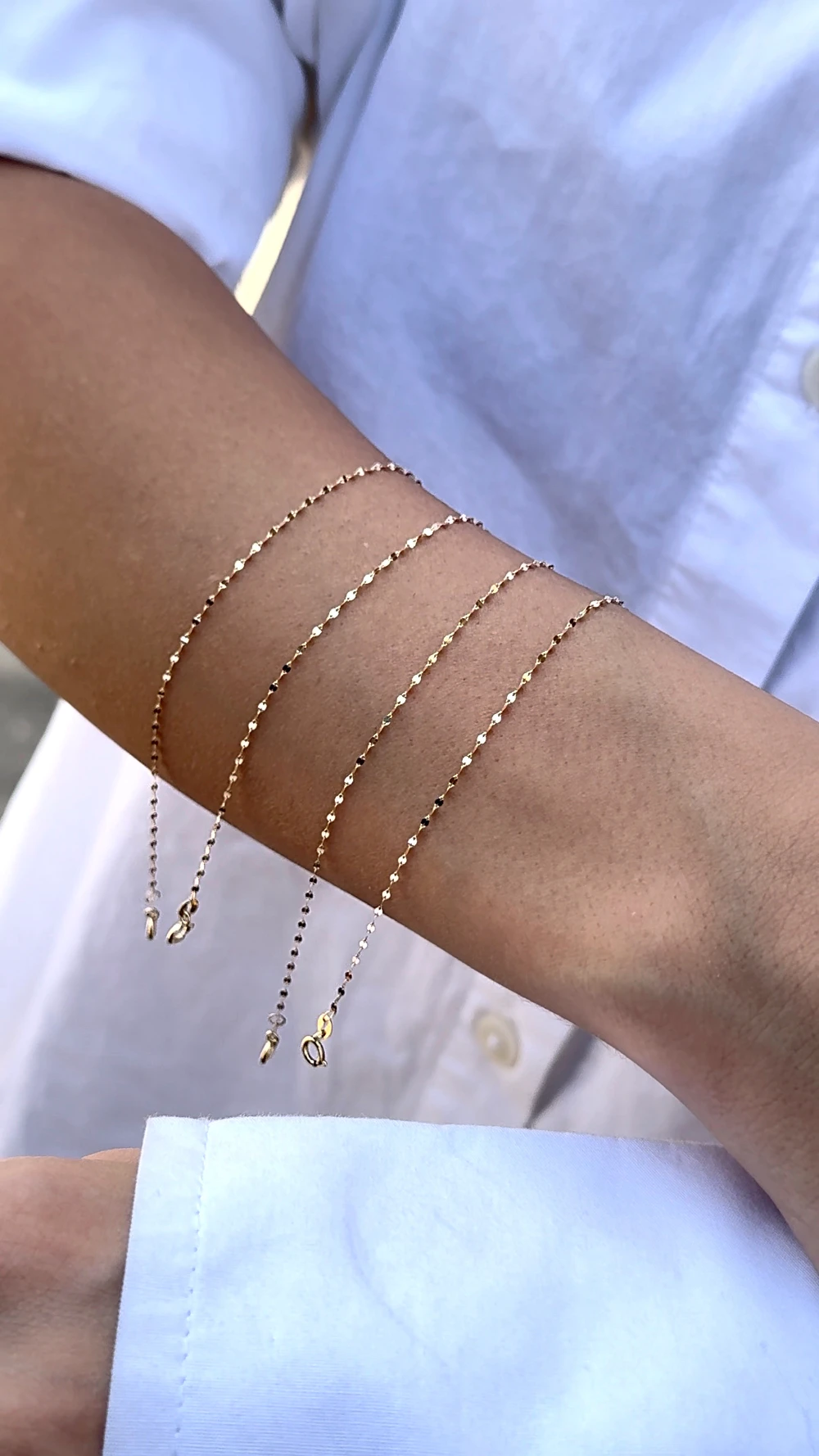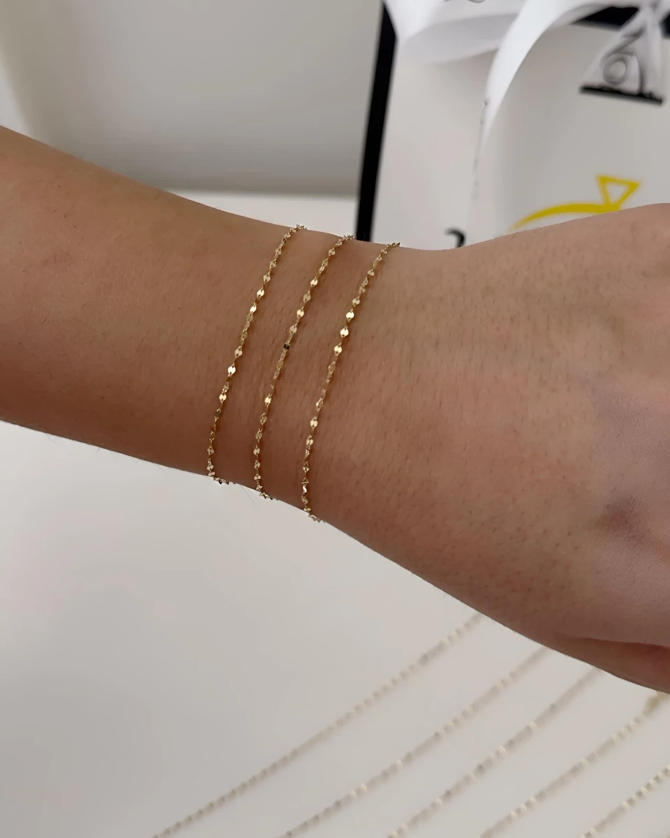 این نیمست شامل یک گردنبند طلای ۱۸ عیار به طول حدود ۴۰ سانتیمتر و یک دستبند طلای هماهنگ به طول تقریبی ۱۷ سانتیمتر است که هر دو بافتی یکدست و ظریف دارند. طراحی پولکیمانند این نیمست باعث میشود در برابر تابش نور، انعکاس و درخششی خیرهکننده ایجاد شود و زیبایی آن با حرکت بدن چندبرابر گردد.با وجود وزن سبک، این نیمست از مقاومت بالایی برخوردار است و میتواند برای استفاده روزمره یا مهمانیها انتخابی ایدهآل باشد. ظرافت بافت و جلاکاری دقیق آن باعث میشود روی پوست بهراحتی بنشیند و با هر نوع پوششی، از استایلهای رسمی گرفته تا اسپرت، هماهنگ شود.