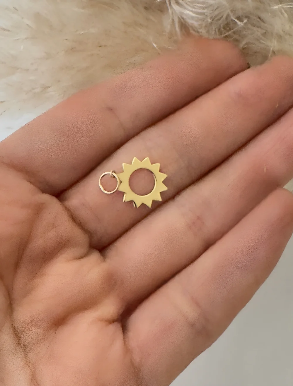 پلاک خورشید کد 100080 از گالری نو ال، یک پلاک طلا زنانه با طراحی مدرن و مینیمال است. این آویز طلا با الهام از نماد خورشید، از طلای ۱۸ عیار ساخته شده و نمادی از زندگی، امید و انرژی است. طراحی دایره توخالی در مرکز و شعاعهای منظم اطراف آن، جلوهای خاص و درخشان به این گردنبند طلا بخشیده است.