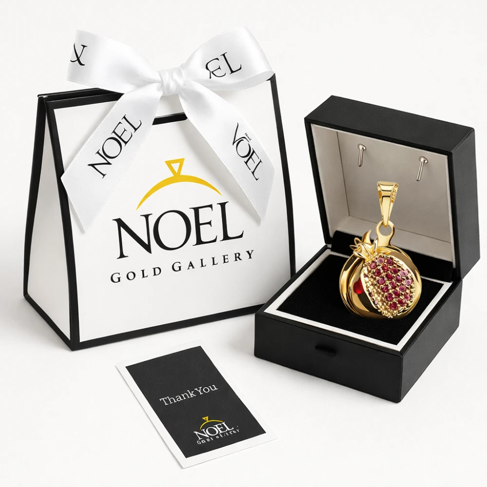 این محصول از طلای ۱۸ عیار ساخته شده و اندازه پلاک آن ۱۳ میلیمتر است؛ اندازهای ایدهآل که در عین ظرافت، جلوهای چشمگیر روی گردن ایجاد میکند. نگینهای استفادهشده در طراحی انار، با دقت و ظرافت کار شدهاند و وزن نگینها از وزن طلای فاکتور کسر میشود؛ موضوعی که باعث شفافیت قیمت و صرفه اقتصادی بیشتر برای خریدار میشود.