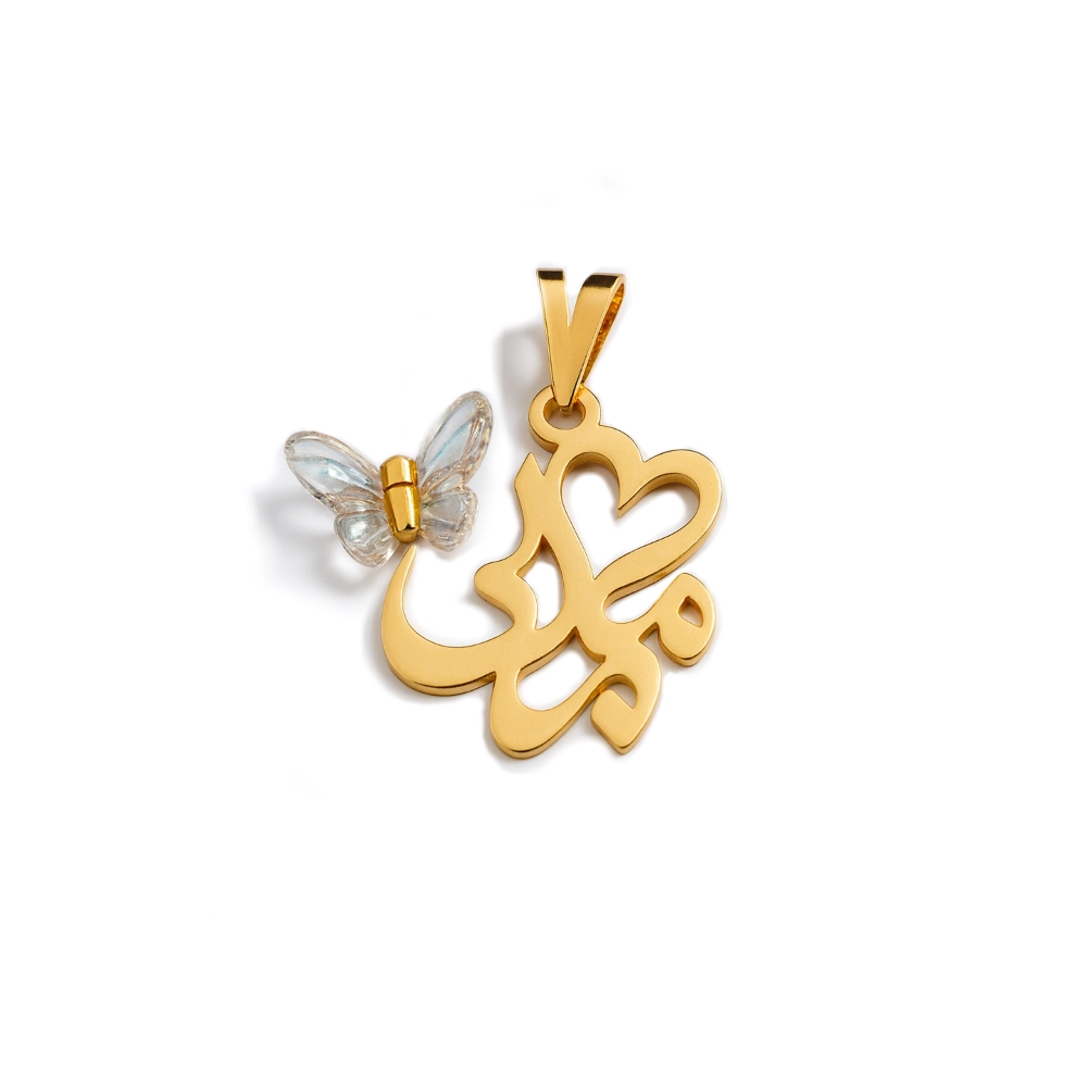 پلاک طلای مامان پروانهای یکی از خاصترین و احساسیترین طراحیهای نو ال گلد گالری است؛ ترکیبی از زیبایی کلاسیک خط نستعلیق با ظرافت نماد قلب و لطافت یک پروانه کوچک که در کنار کلمه «مامان» نشسته است.
