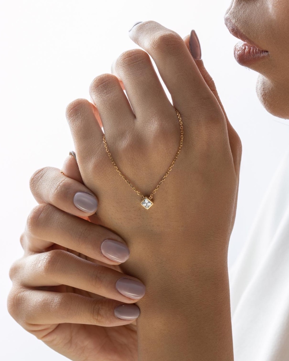 گردنبند تک نگین مربع کد 30081 با طراحی ساده و شیک خود، انتخابی عالی برای کسانی است که به زیورآلات مینیمال علاقه دارند. نگین مربعی در مرکز زنجیر ظریف، جلوهای لوکس و در عین حال روزمره به استایل شما میدهد.
