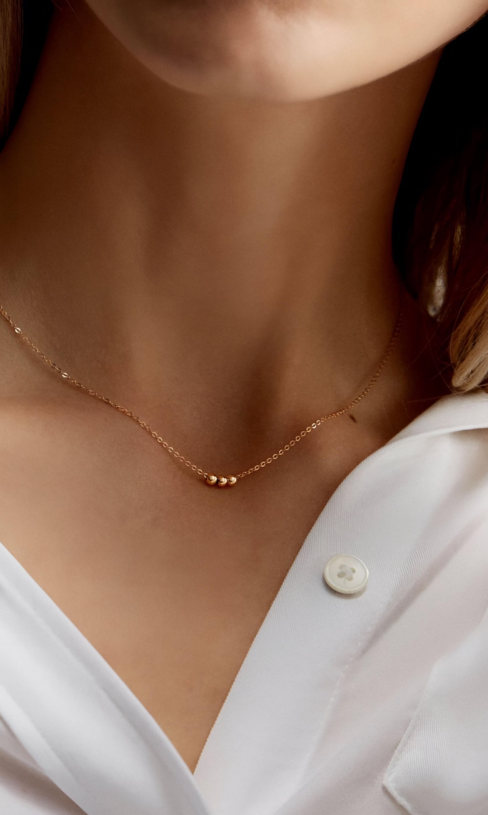 گردنبند سه گوی طلا از زنجیر فلامینگو باکیفیت و سه گوی طلای ۱۸ عیار ساخته شده است. بافت انعطافپذیر زنجیر فلامینگو باعث شده این مدل برای استفاده روزمره بسیار مناسب باشد. طول زنجیر 40 سانتیمتر بوده و روی استخوان ترقوه قرار میگیرد؛ ضخامت متوسط زنجیر نیز باعث میشود روی گردن بهخوبی دیده شود. این مدل هم به تنهایی ظاهر مینیمال و شیک دارد و هم با آویزهای متوسط یا سنگین قابل ست کردن است.