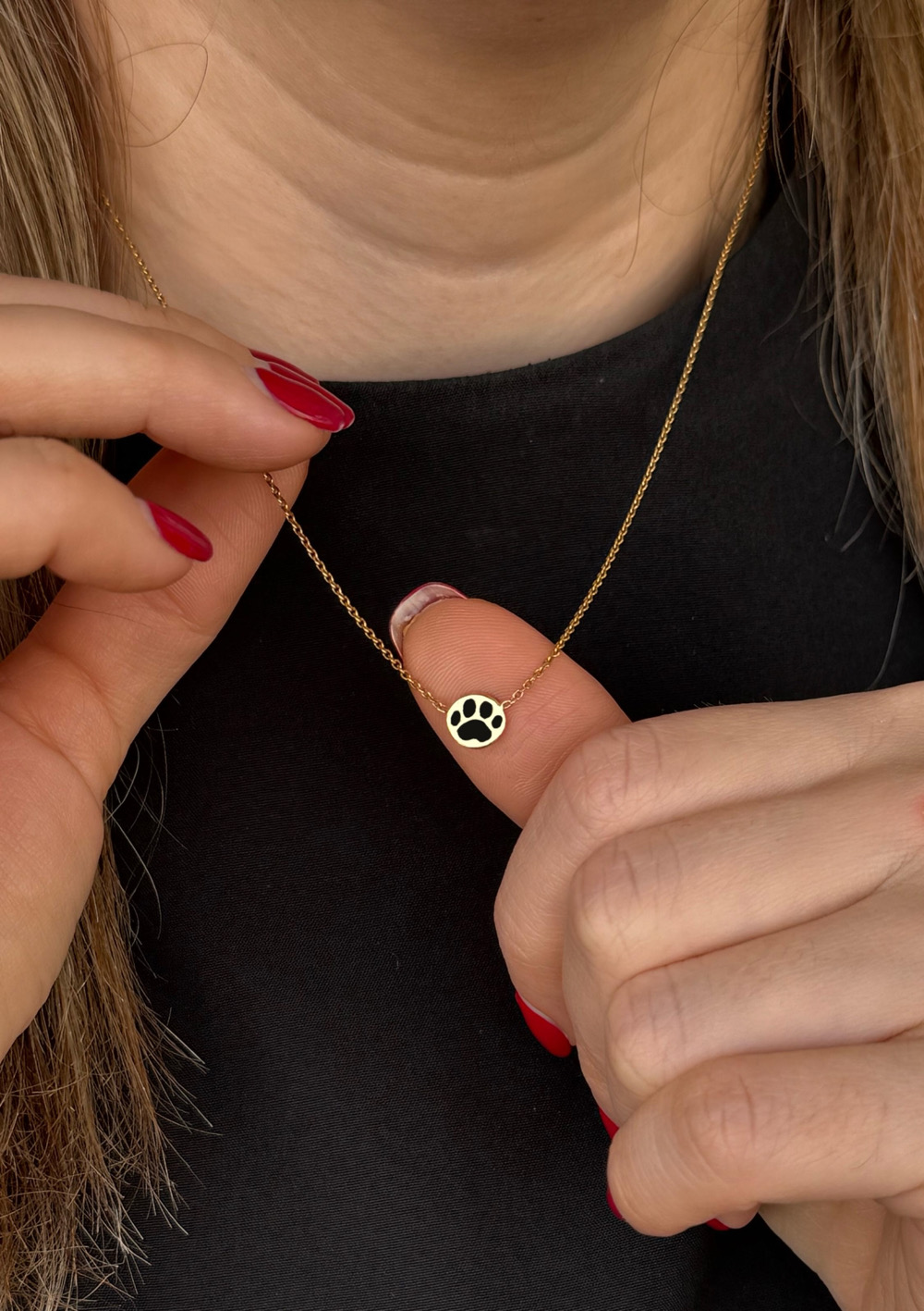 اگر حیوان خانگی مانند سگ یا گربه دارید یا قصد هدیه دادن به شخصی با حیوان خانگی را دارید، گردنبند طرح پنجه میناکاری انتخابی ویژه و شخصیسازی شده است. این مدل با زنجیر فلامینگو ۴۰ سانتیمتری و پلاک ۹ میلیمتری ارائه میشود و رنگ مینا به دلخواه شما (سفید یا مشکی) قابل سفارش است. طلای بهکاررفته ۱۸ عیار بوده و وزن مینا از طلای کل کسر شده است.