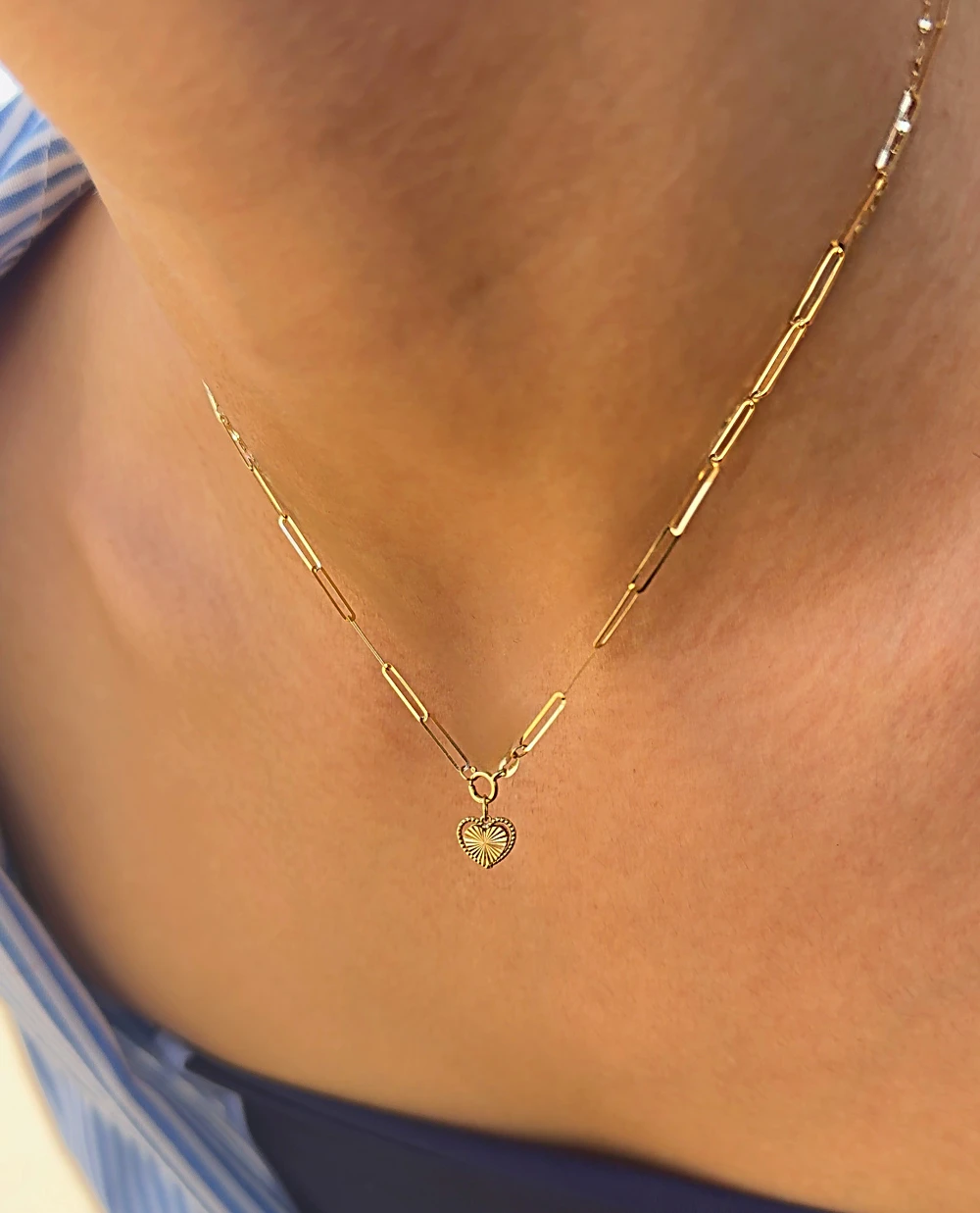 اگر به دنبال یک گردنبند خاص، ساده و در عین حال چشمنواز هستید، گردنبند قلب تراشدار با زنجیر هرمس میتواند یکی از بهترین انتخابها برای شما باشد. این گردنبند از طلای ۱۸ عیار ساخته شده و طراحی مینیمال و مدرنی دارد که آن را به گزینهای مناسب برای استایل روزمره و حتی مراسم رسمی تبدیل میکند.