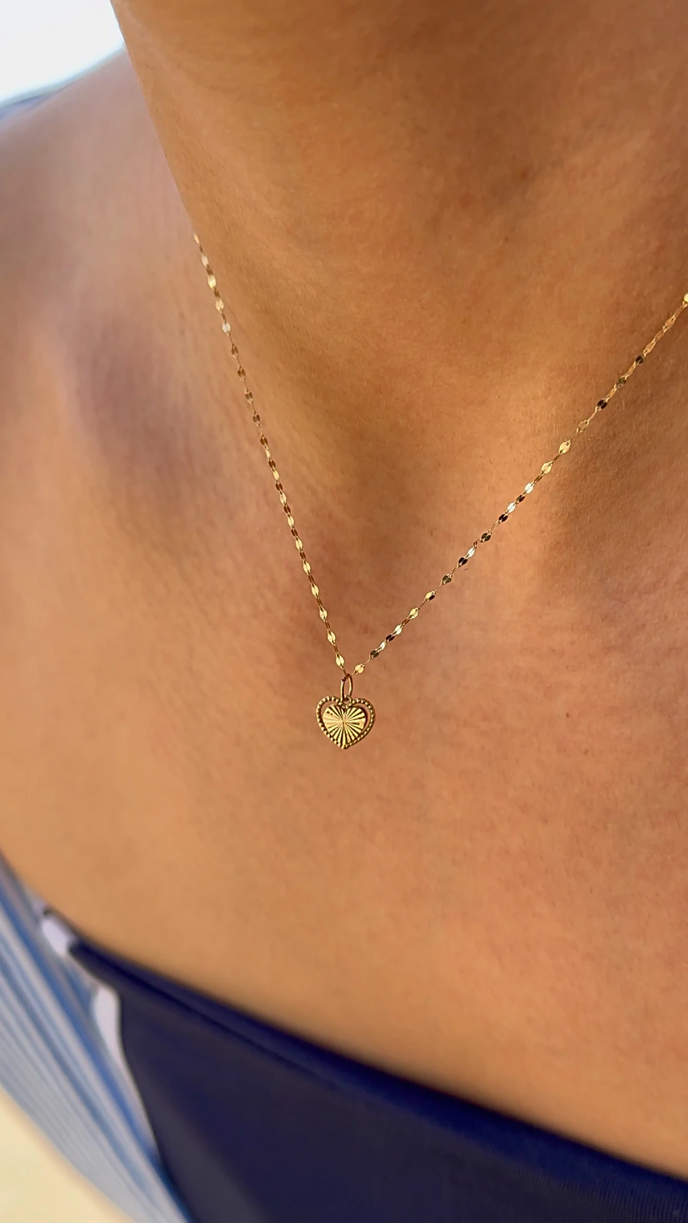 پلاک قلب این گردنبند با تراشهای دقیق طراحی شده است؛ به همین دلیل با حرکت بدن یا تغییر زاویه نور، بازتابهای متفاوت و زیبایی ایجاد میکند که جذابیت گردنبند را چندین برابر میسازد. نکته مهم اینکه در این کار از هیچگونه سنگ یا نگین استفاده نشده است، بنابراین علاوه بر سبک بودن، نیازی به پرداخت اجرت اضافه بابت مخراجکاری یا نگینگذاری وجود ندارد و اجرت ساخت آن کاملاً منصفانه محاسبه میشود.