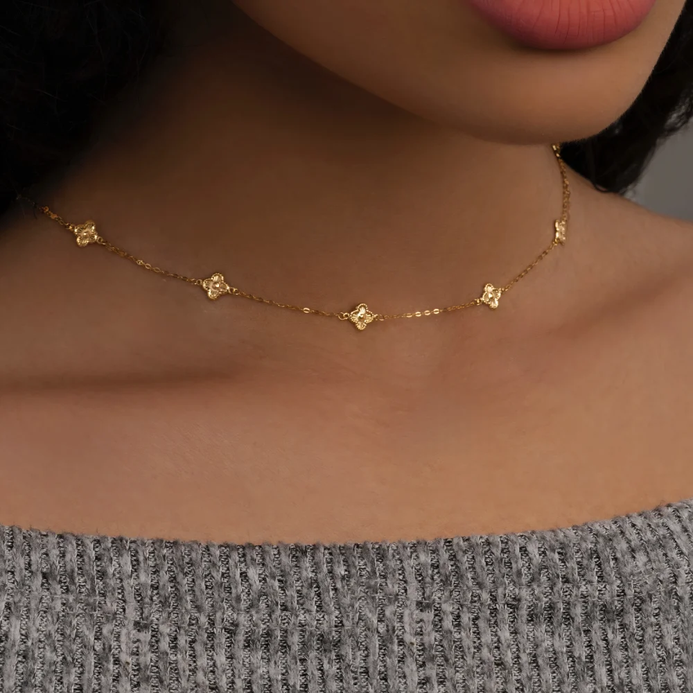 اندازه پلاکها: هر پلاک شبدر ۸ میلیمتر است که با ظرافت تمام به زنجیر متصل شدهاند.