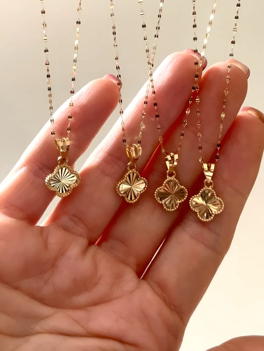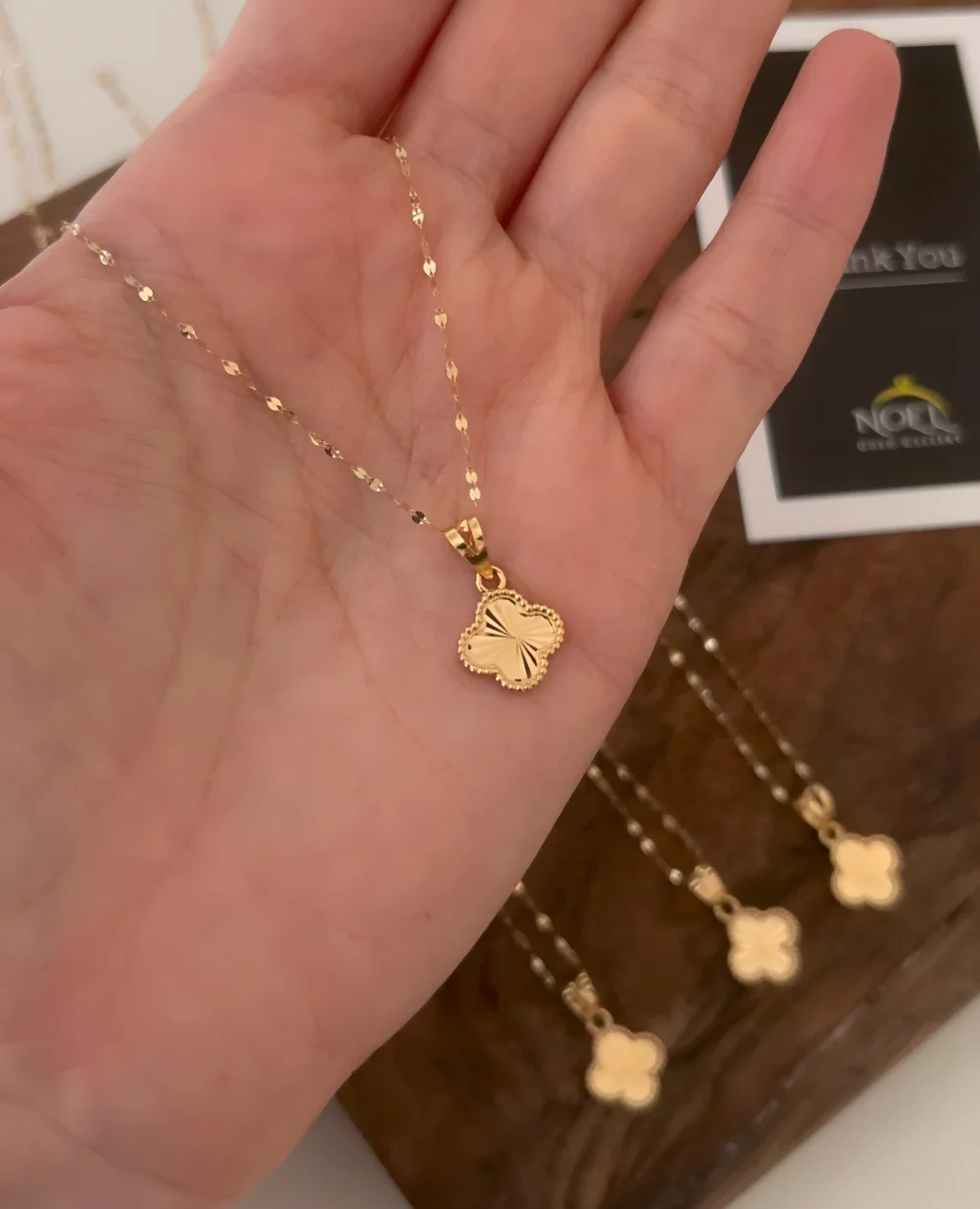 آویز این گردنبند، با الهام از طرح معروف ونکلیف، به شکل یک گل چهار برگ طراحی شده است. این طرح، نمادی از خوششانسی و اقبال بلند است.