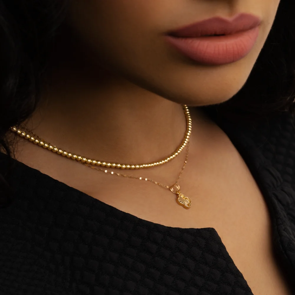 این گردنبند، به خصوص با لباسهایی که یقه باز دارند، جلوه بیشتری پیدا میکند.