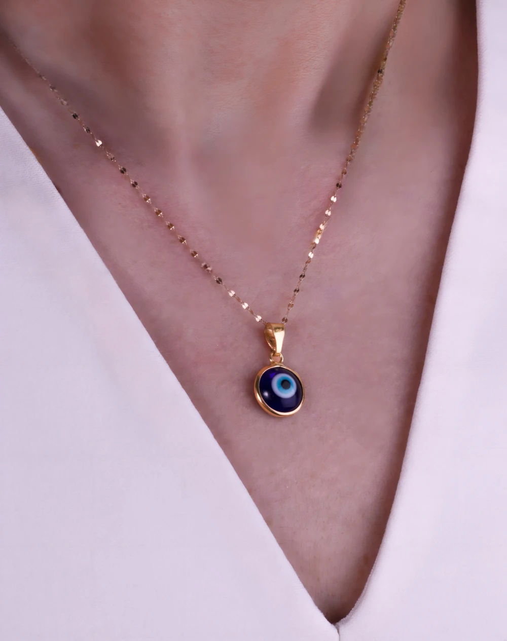 گردنبند چشم نظر طلا کد 100001005، نمادی از محافظت و زیبایی است که با طرح چشم آبی رنگ خود، به عنوان طلسم خوش‌یمنی در برابر چشم زخم و انرژی‌های منفی شناخته می‌شود. این گردنبند از طلای ۱۸ عیار ساخته شده و یکی از محبوب‌ترین و پرطرفدارترین زیورآلات است.