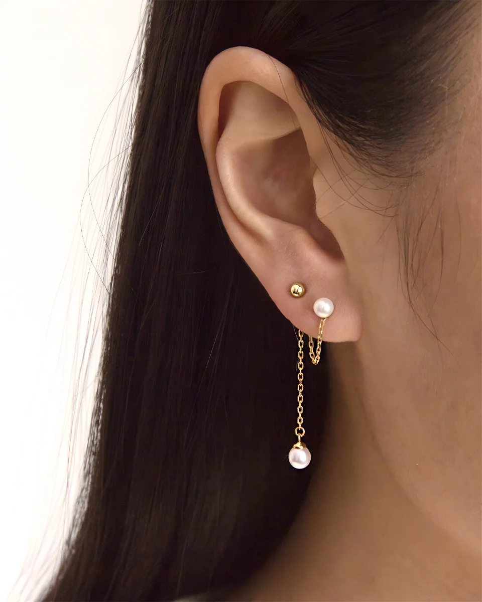 گوشواره آبشاری گوی و مروارید کد 100034 از گالری نو ال، یک گوشواره طلا زنانه با طراحی خاص و نوآورانه است. این گوشواره طلا که از طلای ۱۸ عیار ساخته شده، به صورت انحصاری برای افرادی با دو سوراخ در یک گوش طراحی شده است. در این گوشواره، یک مروارید درخشان به قطر 3.5 میلیمتر و یک گوی طلایی ظریف به قطر 3 میلیمتر به صورت آبشاری در کنار هم قرار گرفتهاند.