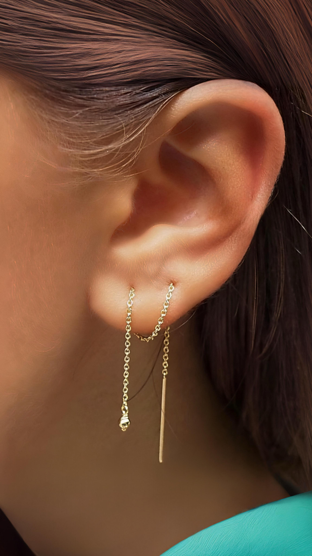گوشواره بخیهای گوی که با نام گوشواره زنجیری هم شناخته میشود، از مدلهای پرطرفدار، سبک و ظریف است. این گوشواره با وجود وزن کم، جلوهای شیک دارد و به دلیل فشار نیاوردن به گوش، برای استفاده روزانه و مجالس کاملا مناسب بوده و گزینهای عالی برای هدیه محسوب میشود.