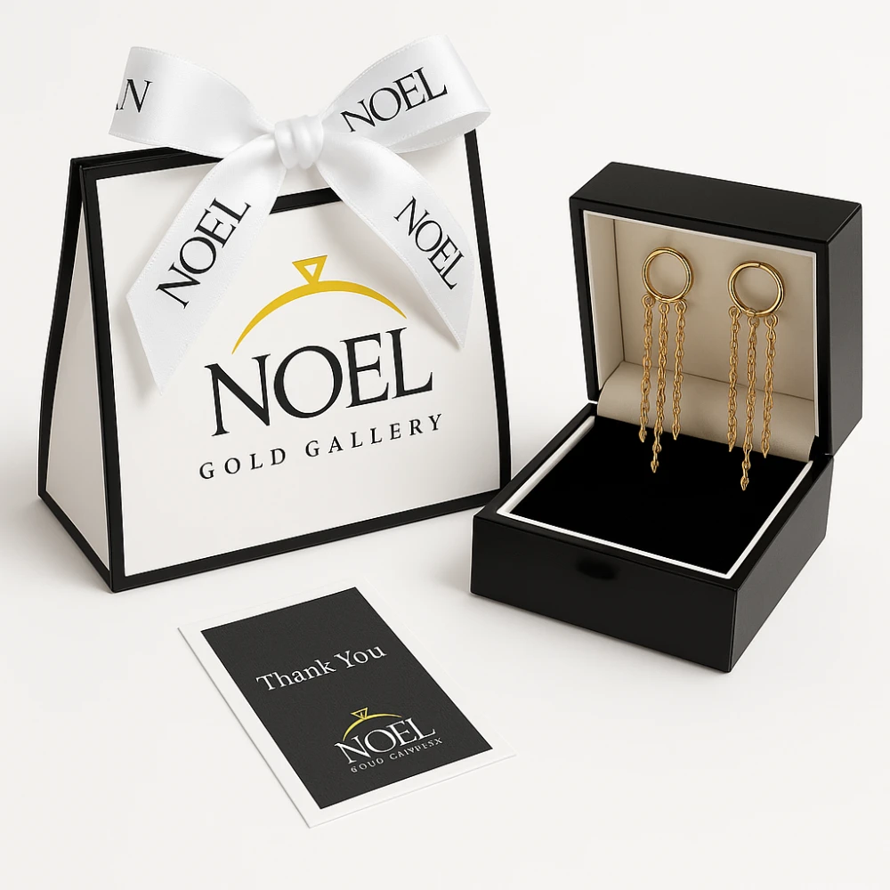 گوشواره سولین به‌همراه بسته‌بندی لوکس نو ال گلد گالری، ارسال می‌شود تا تجربه‌ای کامل و شیک از خرید طلا برای شما رقم بزند