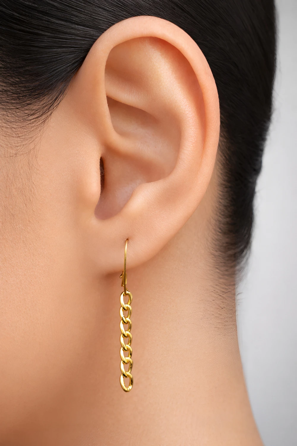 طراحی و مشخصات گوشواره طلا عصایی با آویز زنجیر کارتیه کد 100227