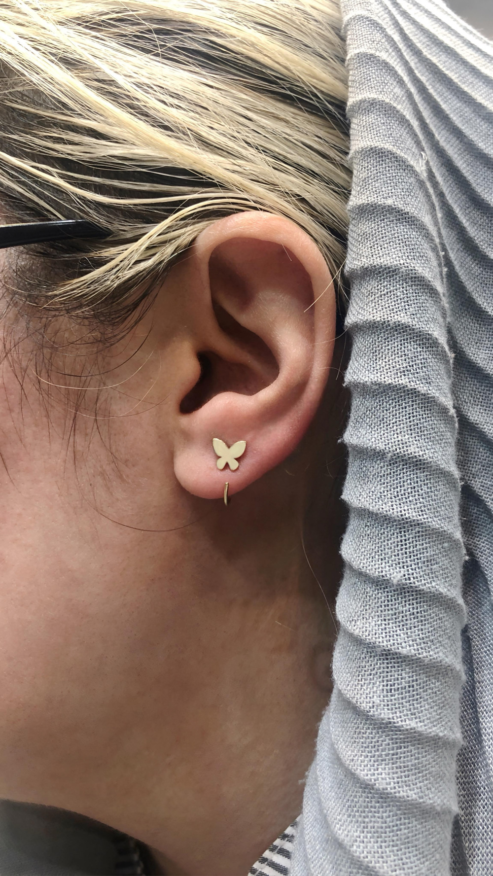 گوشواره عصایی پروانه از مدلهای محبوب و پرطرفدار گوشوارههای عصایی است که به دلیل وزن سبک، استفاده آسان و مناسببودن برای استفاده روزمره، انتخاب بسیاری از افراد میباشد. تفاوت اصلی این مدل با گوشوارههای میخی، راحتی بیشتر و امکان استفاده حتی هنگام خواب است. همچنین در مقایسه با مدلهای پرسینگ، وزن کمتر و اجرت ساخت پایینتری دارد.