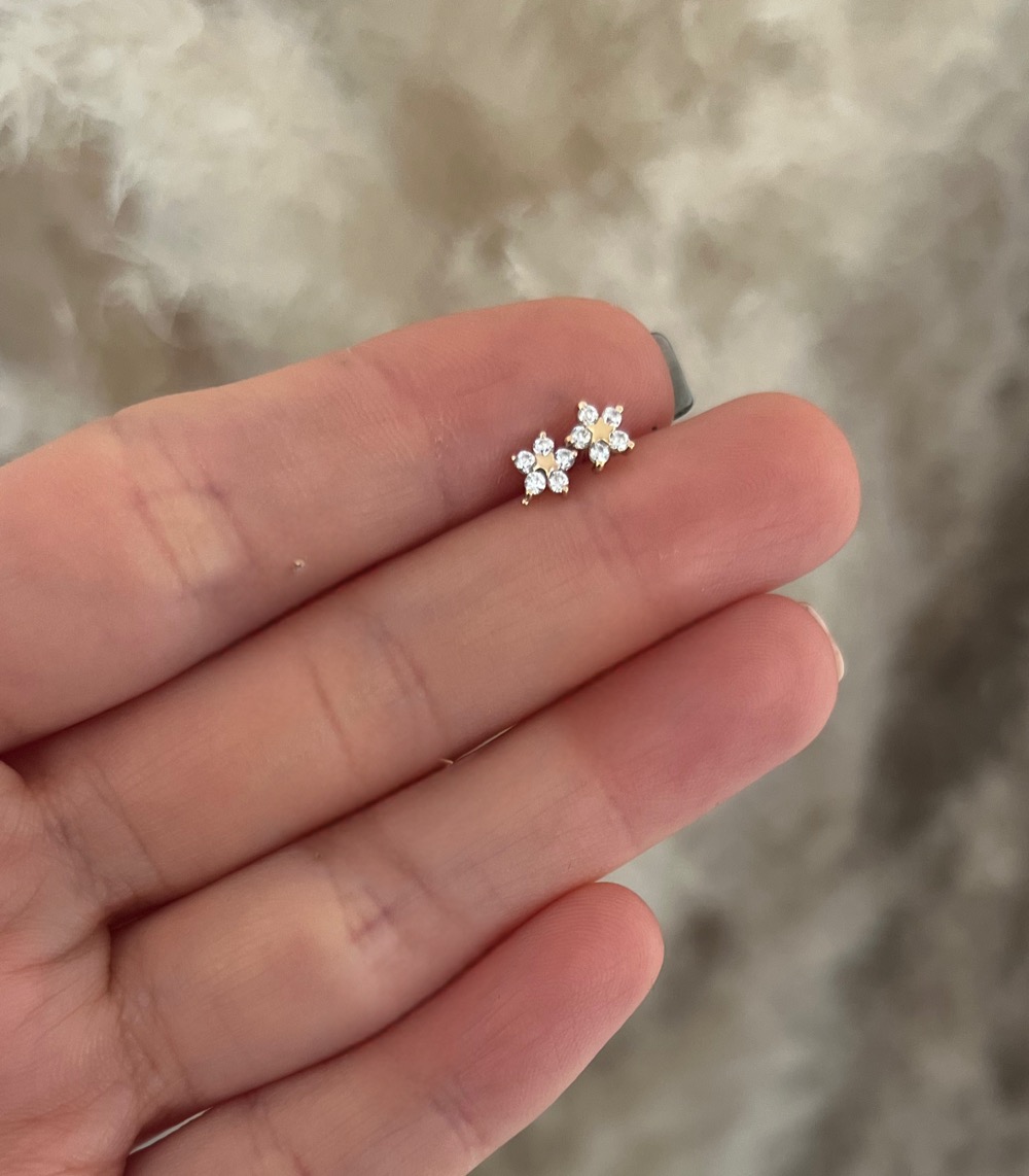 گوشواره فلاور پنج پر نگیندار کد 30092 نماد هماهنگی و سادگی در طبیعت است. عدد پنج در بسیاری ار فرهنگ ها نماد تعادل و هماهنگی است و گل نماد رشد و شکوفایی است. این گوشواره با وجود نگین های جذابش گزینه مناسبی برای استفاده روزمره و حتی لباس های کژوال و ساده است.