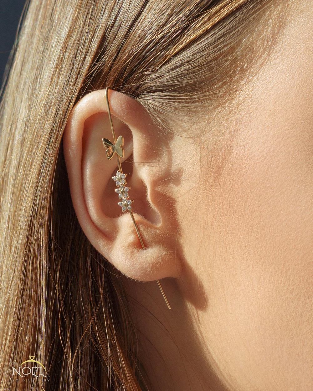 این گوشواره با طراحی ترکیبی کراس، پروانه و گل عرضه میشود؛ طرحی هنری و جذاب که ترکیبی از نمادهای معنوی و جلوه طبیعی را در خود دارد. انتخاب طلای ۱۸ عیار در ساخت این مدل به آن استحکام و دوام میبخشد در حالی که طراحی ظریف و وزن کم آن، امکان استفاده روزانه را فراهم میسازد.