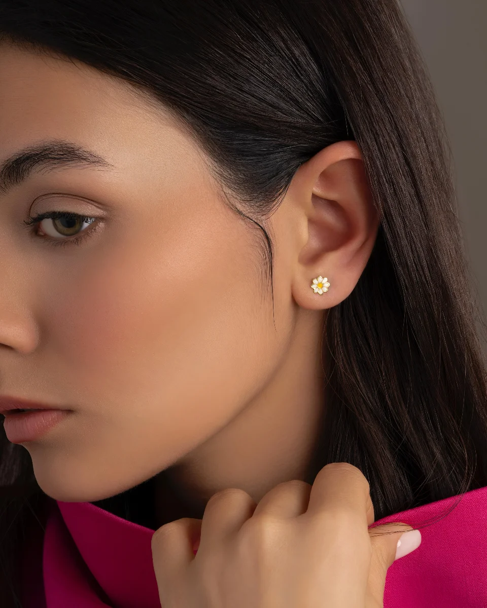درباره گوشواره گل بابونه طلا میناکاری شده کد 100019