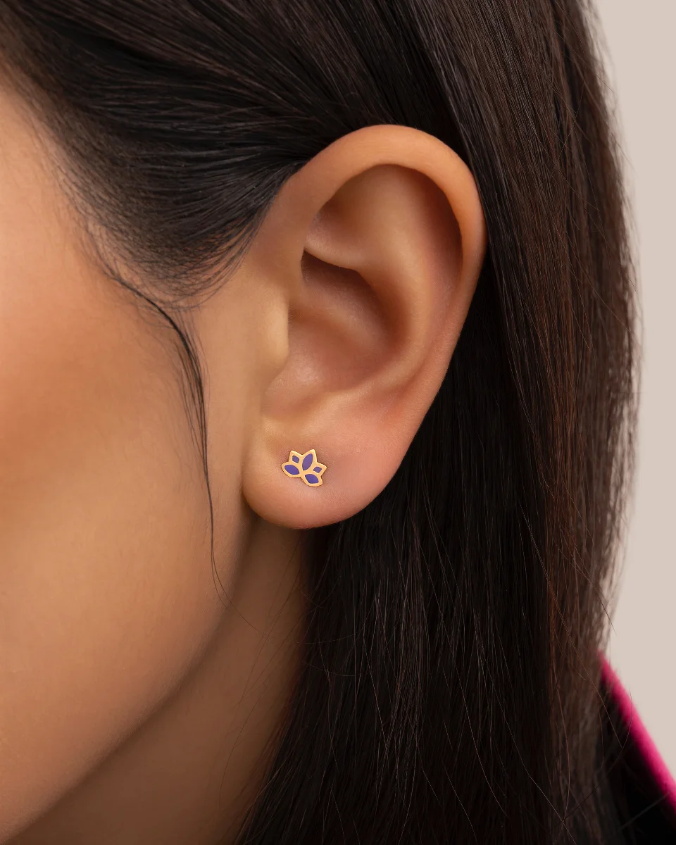 درباره گوشواره گل نیلوفر میناکاری طلا کد 100045